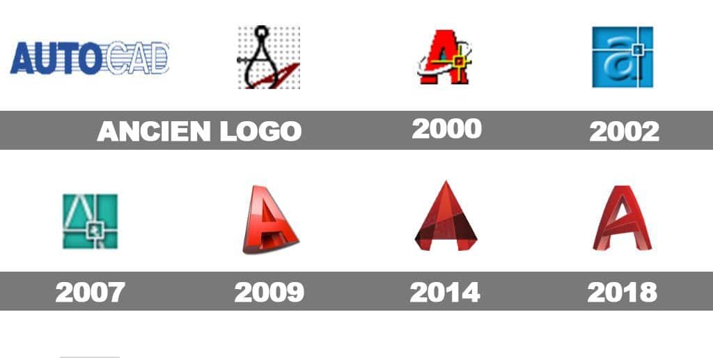 Au fil des ans, le logo AutoCAD a connu plusieurs modifications suivant les nouvelles fonctionnalités apportées et les améliorations de celles existantes. Ces modifications sont significatives l’une autant que l’autre. Ainsi, nous avons :